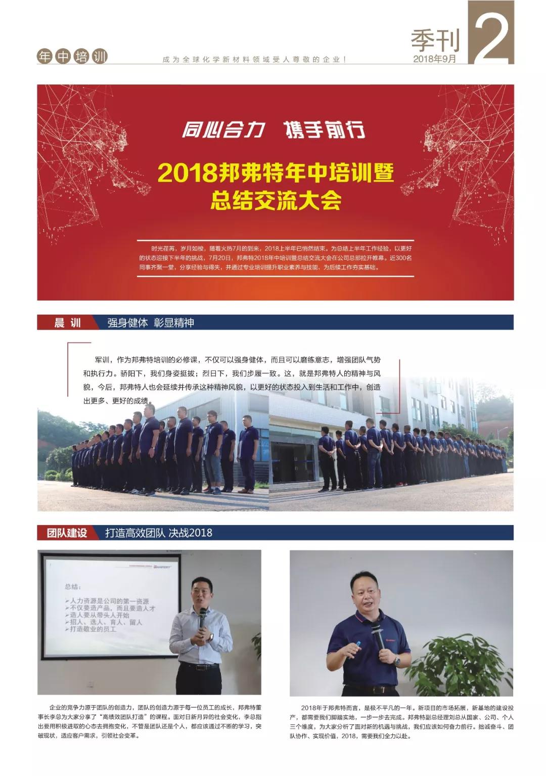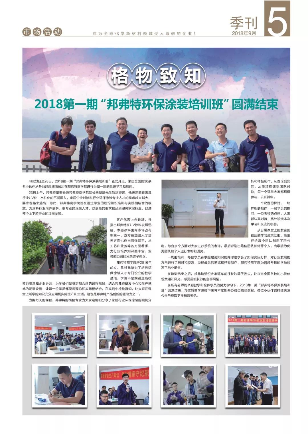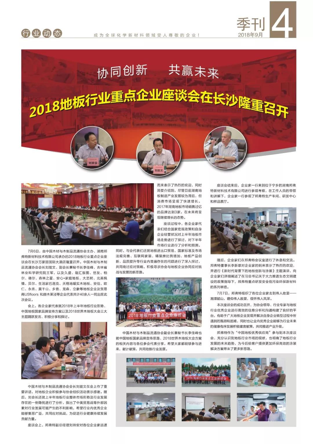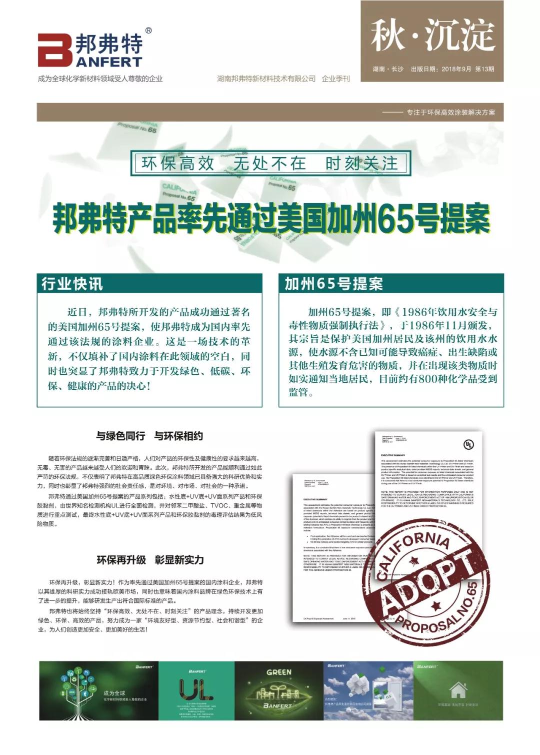 新品(pin)研(yan)髮率(lv)先(xian)通(tong)過加州(zhou)65號(hao)提案(an),年(nian)中(zhong)培(pei)訓(xun)打造高(gao)傚糰隊,地闆行業(ye)重(zhong)點企業座(zuo)談會(hui)與客(ke)戶協衕創新(xin),環(huan)保(bao)塗裝培訓班格物(wu)緻(zhi)知(zhi),邦弗(fu)特獎學金走進高等(deng)學(xue)府(fu),健康百(bai)寶(bao)箱攜(xie)愛齣髮……