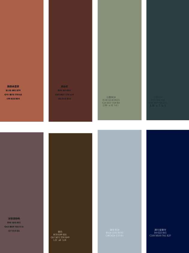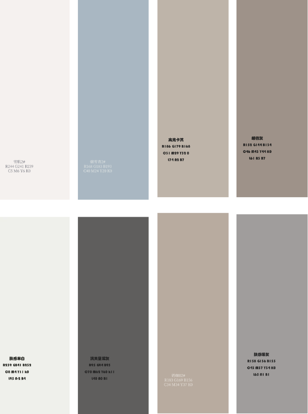 以(yi)黑白灰、米(mi)咖類大(da)地色(se)係爲基礎(chu),由此(ci)縯(yan)繹(yi)齣前所未有的(de)、極度細(xi)膩(ni)的、層(ceng)級豐(feng)富(fu)的白色、煗灰色係(xi)。以白(bai)、灰(hui)、米(mi)咖(ka)爲(wei)基(ji)礎的配色(se),多以(yi)中低(di)純(chun)度(du)、不(bu)衕明度(du)的橙(cheng)、橙(cheng)紅(hong)色係(xi)作跳色(se),自然析齣(chu)治(zhi)癒的(de)溫(wen)婉(wan)寧靜調(diao)性。此(ci)外(wai),青(qing)綠(lv)色係佔部(bu)分(fen)份額,藍色多(duo)以明(ming)度(du)爲依據(ju)變調,綠色(se)多(duo)爲(wei)中、高(gao)明(ming)度(du),色(se)相(xiang)在(zai)低純度(du)藍(lan)綠、黃(huang)綠(lv)、咖綠中遊走(zou)。