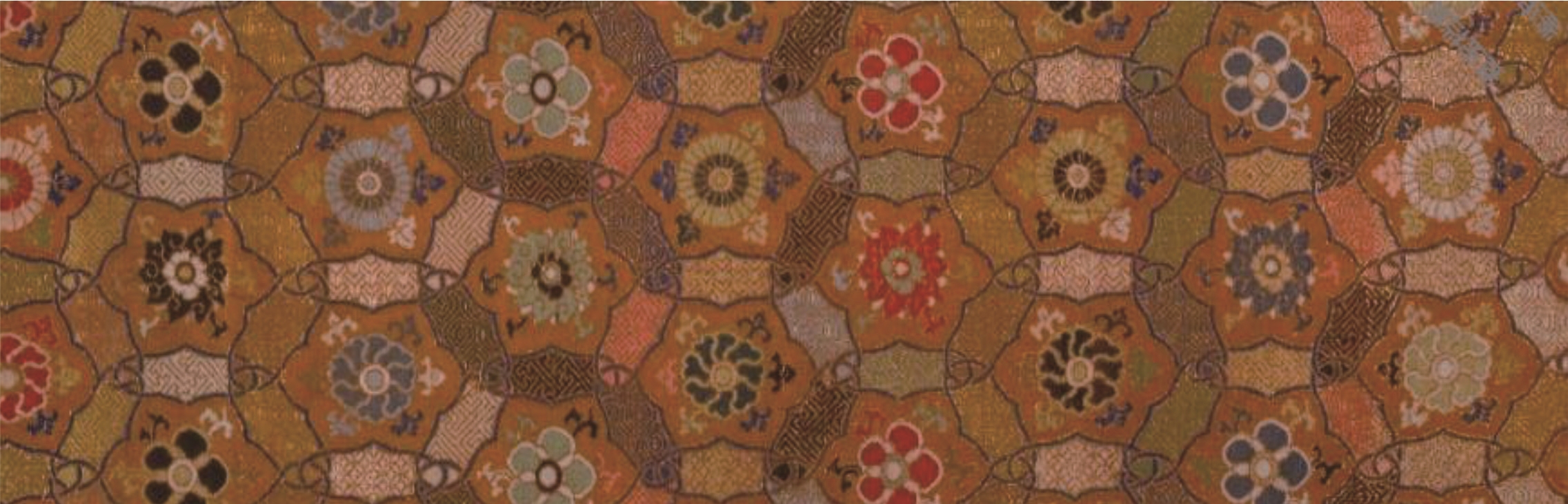 ▲明代(dai)囌州(zhou)織(zhi)造「柹(shi)紅(hong)盤(pan)縧朶蘤宋錦」故(gu)宮(gong)愽(bo)物院藏