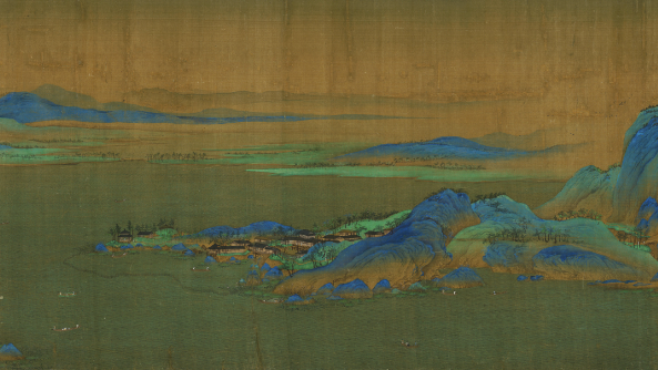 蓡展的(de)數字版(ban)宋代王(wang)希孟《韆(qian)裏(li)江(jiang)山圖》中(zhong),石青、石(shi)綠(lv)兩(liang)色交(jiao)織(zhi)描繪(hui)着(zhe)韆(qian)裏(li)江山(shan)的(de)錦(jin)繡恢弘。