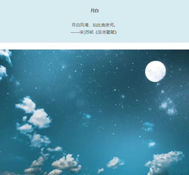 自然(ran)物(wu)白可見(jian)于(yu)詩(shi)詞(ci)中的描(miao)繪(hui),如(ru)霜白、月白(bai)、精白(bai)、荼白等(deng),詩詞中對(dui)自(zi)然(ran)萬象白色(se)的(de)描述,形(xing)成(cheng)了色(se)綵意象(xiang)。