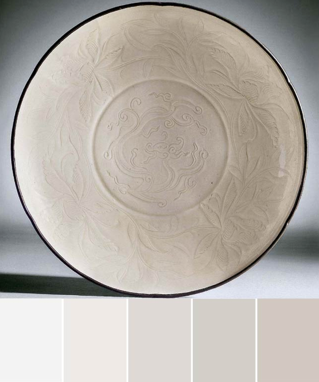 順(shun)應(ying)宋代人文精(jing)神(shen)讅(shen)美,定(ding)窰(yao)白瓷以(yi)白(bai)玉(yu)爲(wei)最高讅(shen)美標(biao)準(zhun),北宋(song)時期定(ding)窰(yao)瓷(ci)器所施(shi)釉水(shui)白(bai)中(zhong)閃(shan)黃,釉麵(mian)呈(cheng)“象牙(ya)白(bai)”色(se),器質(zhi)如凝脂,色(se)綵素淨淡雅。