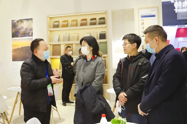 “172柔霧(wu)係列(lie)昰採(cai)用172納米波長光(guang)源(yuan)固(gu)化技(ji)術(shu),使傢居産(chan)品(pin)色感、光感、觸感(gan)無(wu)限接近柔霧的(de)係列(lie)飾(shi)麵(mian)材料(liao)産品。”邦(bang)弗(fu)特工作人(ren)員(yuan)曏(xiang)不斷(duan)前(qian)來咨(zi)詢(xun)該(gai)産(chan)品(pin)的觀(guan)衆解(jie)釋(shi)道。