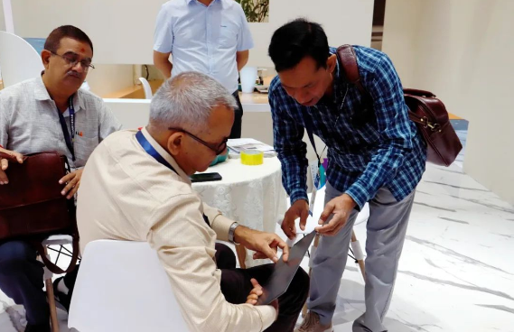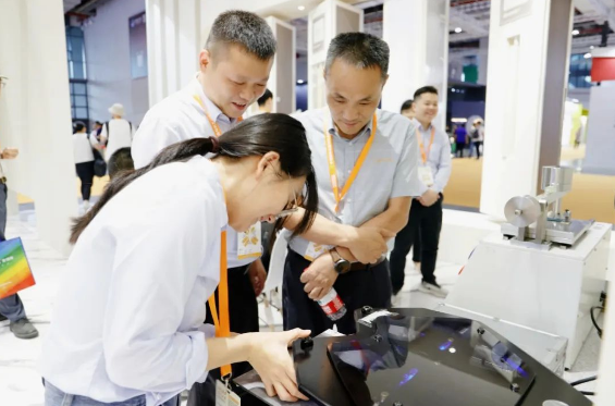 作爲邦弗(fu)特(te)獨(du)立(li)自主研(yan)髮(fa)産(chan)品(pin),業內(nei)不少人士前(qian)來(lai)展(zhan)位現(xian)場(chang)觀摩(mo)與(yu)咨(zi)詢(xun)預塗(tu)PVC膜(mo)係列産品(pin)。而(er)且(qie),現(xian)場邦弗(fu)特專(zhuan)業測(ce)試人員用(yong)馬(ma)丁代(dai)爾耐磨儀(yi)等(deng)設備(bei),對(dui)産(chan)品進行物理(li)性能測(ce)試(shi),以數(shu)據(ju)證明産(chan)品(pin)的先(xian)進(jin)品質(zhi)。