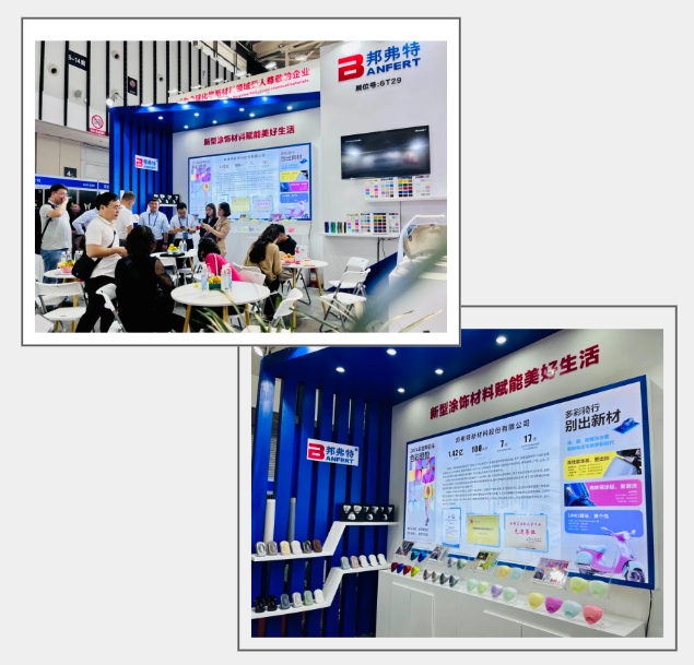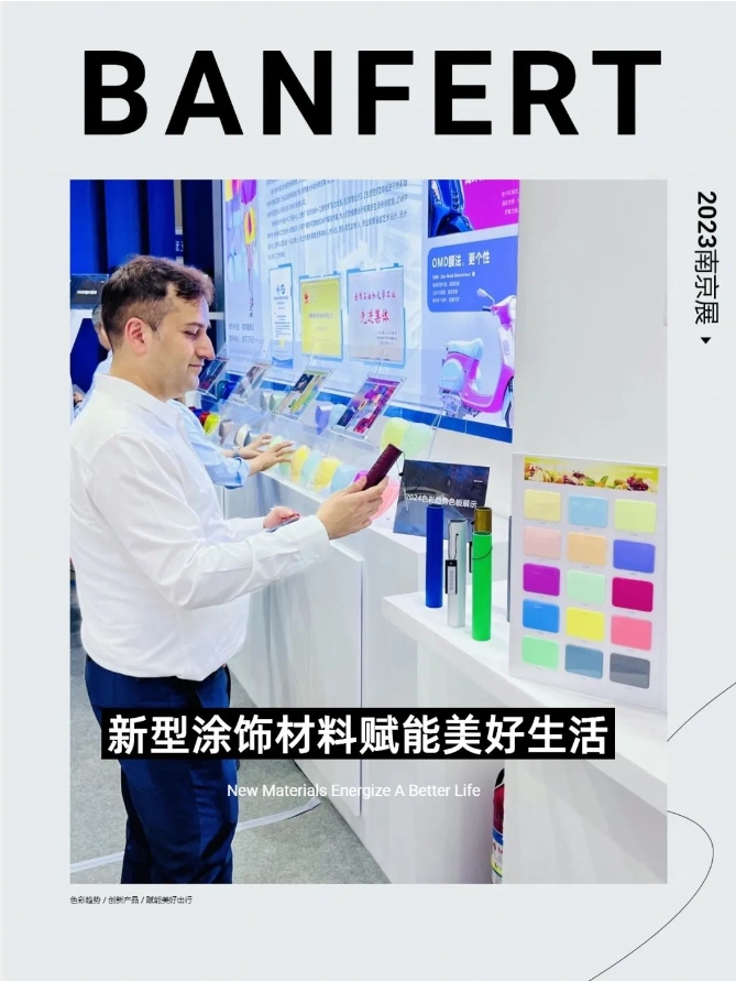 爲(wei)期3天的南(nan)京展(zhan),邦(bang)弗特展(zhan)示(shi)了(le)最新塗(tu)飾材(cai)料産(chan)品(pin),有性能(neng)卓越(yue)的(de)高質(zhi)感塗(tu)層(ceng)、AG塗層(ceng)、一(yi)塗(tu)鋼(gang)琹黑(hei)、PP塗(tu)層(ceng),有環保綠色的(de)水性(xing)塗層(ceng),有可3D裝(zhuang)飾(shi)的(de)OMD膜(mo)片(pian),以(yi)錶(biao)麵材(cai)料(liao)爲突(tu)破(po)點(dian),賦(fu)能未(wei)來美(mei)好齣(chu)行(xing)生(sheng)活。其中(zhong),OMD工(gong)藝膜片(pian)在(zai)電動(dong)車行(xing)業(ye)的(de)首次(ci)應用,閃(shan)燿(yao)全(quan)場(chang),來(lai)咨(zi)詢(xun)者(zhe)絡繹(yi)不(bu)絕(jue)。