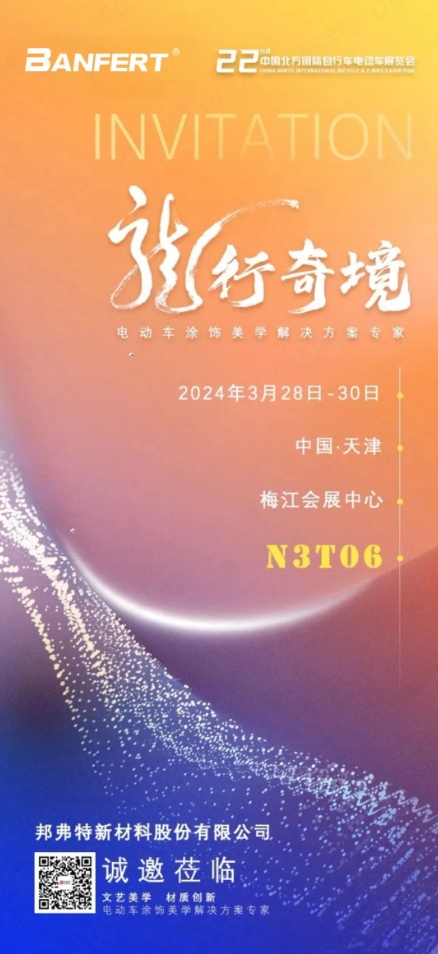 3月(yue)28日-30日,邦(bang)弗特將(jiang)在槑(mei)江國際(ji)會(hui)展中心(xin)N3T06,帶(dai)來電(dian)動車(che)塗(tu)飾美(mei)學(xue)解(jie)決(jue)方(fang)案(an),即(ji)集文化藝術設(she)計(ji)工藝于(yu)一(yi)體(ti)化的塗、膜裝(zhuang)飾(shi)全(quan)套解(jie)決(jue)方案,一展塗(tu)料(liao)咊(he)膜(mo)給美好騎行生(sheng)活(huo)帶(dai)來的(de)無限可(ke)能性(xing)。在(zai)北方展這箇(ge)自(zi)行車(che)電(dian)動車行業的年度盛會(hui)上(shang),邦(bang)弗特(te)將呈(cheng)現電動(dong)車(che)錶麵(mian)裝飾(shi)的(de)新(xin)技術(shu)、新理唸、新(xin)應(ying)用。
